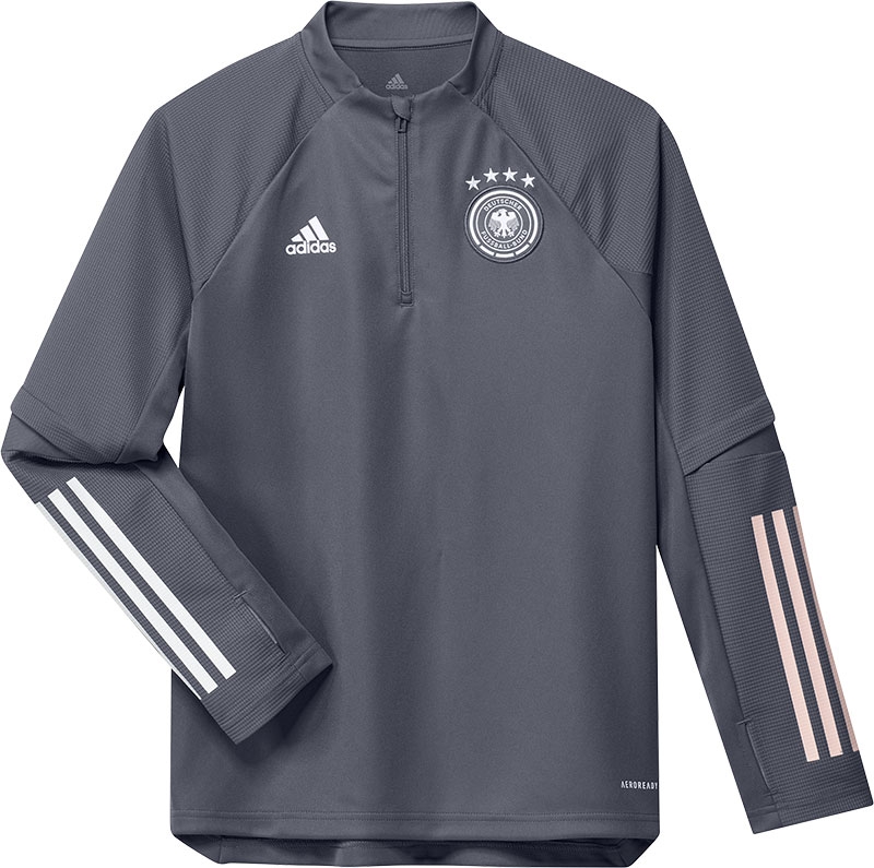 – De adidas Duitsland Training Top Kids is afkomstig uit de officiële collectie van ?Die Mannschaft? voor het EK 2020. De sterspelers van Duitsland zullen in deze top te bewonderen zijn tijdens de trainingen. De top heeft een normale pasvorm en heeft een stijlvolle ronde hals. De mouwen bevatten een verlengd stuk met duimgaten voor meer warmte rondom de hand. De trainingtop is afgewerkt met de bekende stripes op de mouwen, het adidas logo en het embleem van de Duitse voetbalbond. De speciale ClimaCool technologie zorgt voor ademend vermogen en uitstekende ventilatie tijdens het sporten. Materiaal: 100% polyester